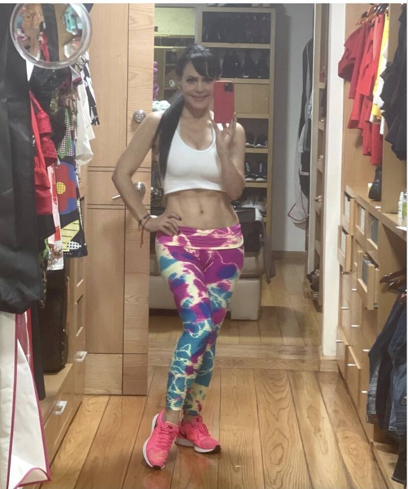 Inclusive en algunas ocasiones, sobre todo al hacer ejercicio ha compartido en su Instagram como realmente se ve sin maquillaje y sin filtros, demostrando que realmente no cambia mucho su aspecto con y sin maquillaje.