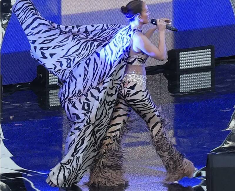 Por lo que después de almorzar con un bello vestido que recordó el que utilizó para su boda con Ben Affleck, "la diva del Bronx" se dirigió a los ensayos, en donde TMZ la capto utilizando el que será uno de sus outfit para la presentación: un conjunto de animal print, donde mostró su tonificada figura.