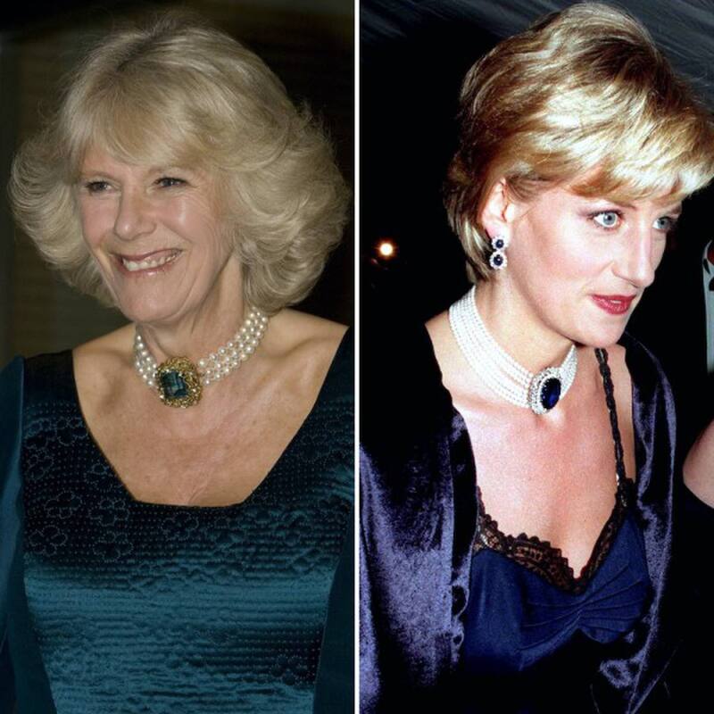 Camila Parker también ha usado de manera frecuente las joyas que lució Diana. La hoy esposa del príncipe Carlos ha lucido piezas confeccionadas con tres hileras de perlas y en el centro una gran gema rodeada de diamantes. Incluso se sabe que ha modificado algunas joyas que eran de Diana para lucirlas como broche.
