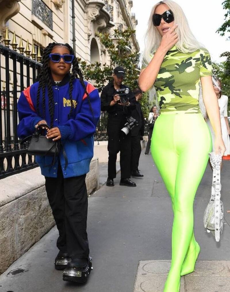 Con su estilo único, madre e hija se robaron las miradas de los periodistas, reporteros y habitantes de la zona que las vieron caminar por las calles parisinas y es que con los colores fluorescentes que eligió Kim Kardashian para vestir fue imposible que pasara desapercibida.