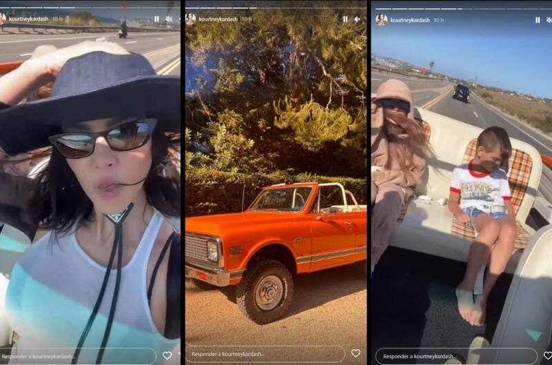 A través de Instagram Stories, la mayor de las Kardashian compartió detalles de este viaje que realizó la familia a bordo de una camioneta color naranja antigua, acompañados de sus hijos Penelope y Reign.