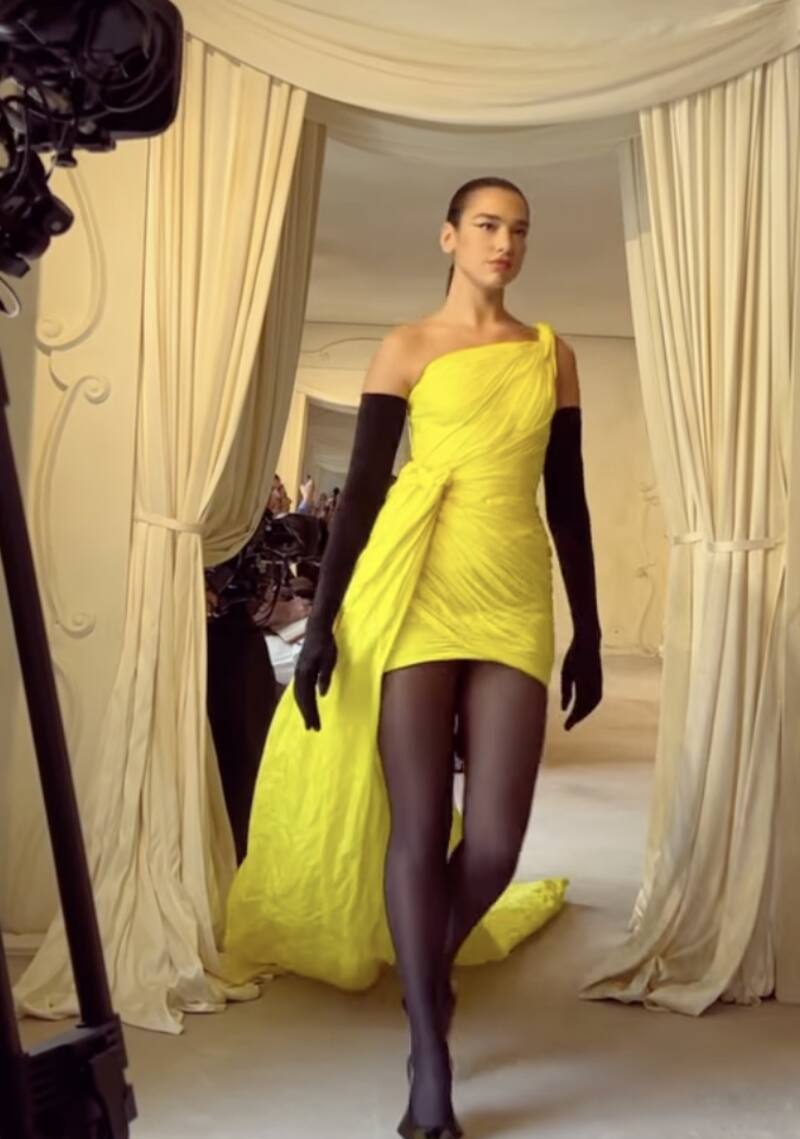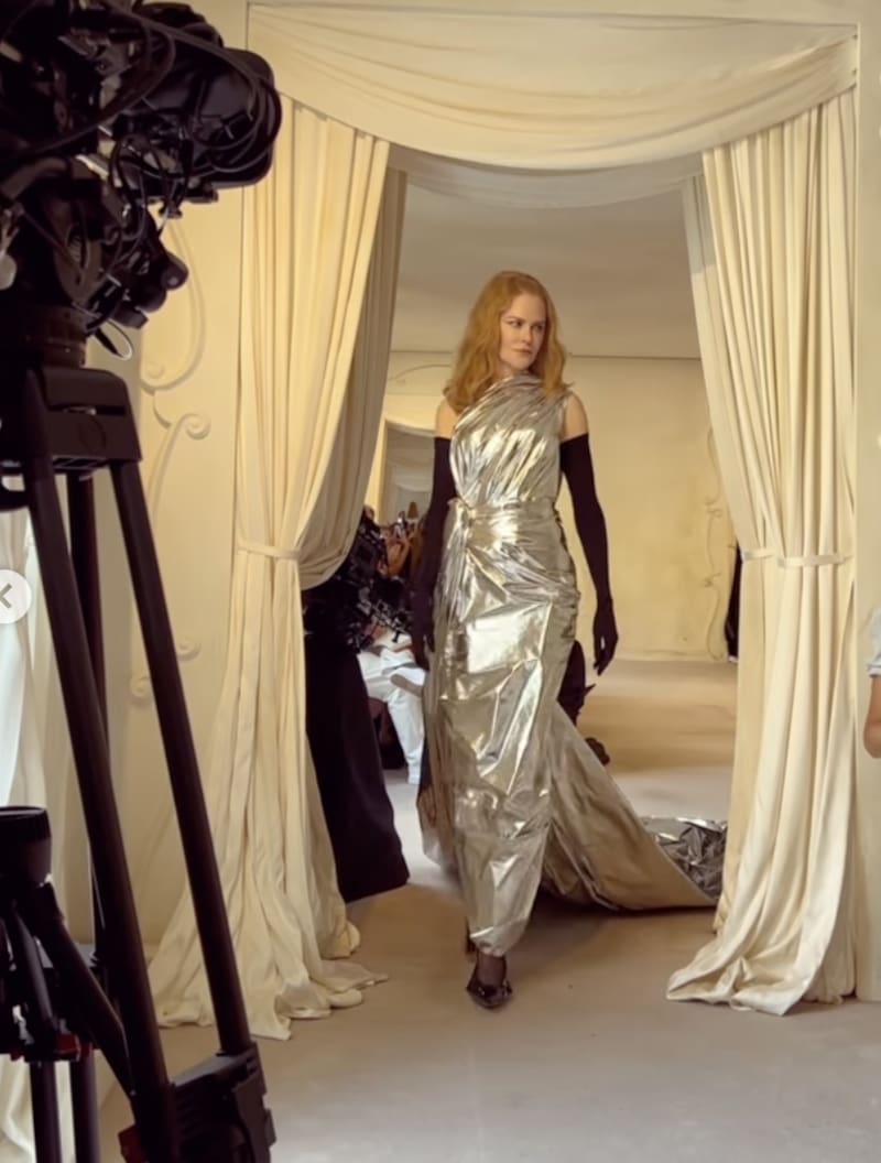 Kim fue solo el comienzo ya que le siguieron un montón de famosas en la pasarela, como Dua Lipa y Nicole Kidman quienes se transformaron en modelos para la ocasión. La cantante deslumbró con un minivestido amarillo de un solo hombro con una cola espectacular, mientras que la actriz se lució en la pasarela con un vestido plateado metalizado y largos guantes negros.