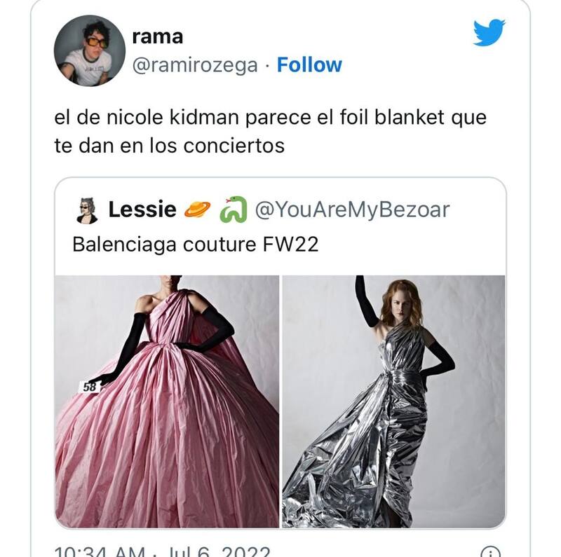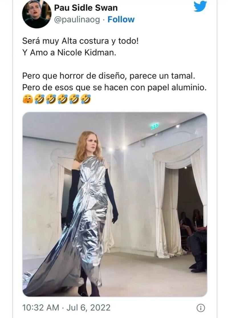 "El de Nicole Kidman parece el foil blanket que te dan en los conciertos", comentó un cibernauta.