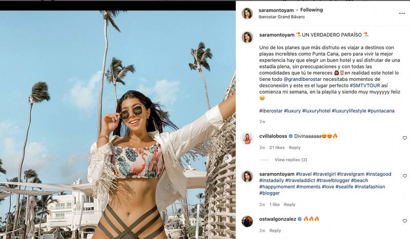 Comentario de Carmen Villalobos hace un par de semanas en el Instagram de Sara Montoya