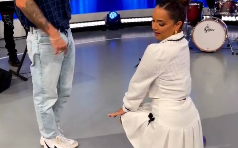 A través de las redes sociales de Omar Fernández, director de Telemundo, se hizo público el video en el que se le ve a Adamari Lopez bailando mientras Llane canta “Fino”. La actriz de “Amigas y rivales” aparece en la toma acercándose sensualmente al cantante quien pareciera le estaba dedicando la canción.