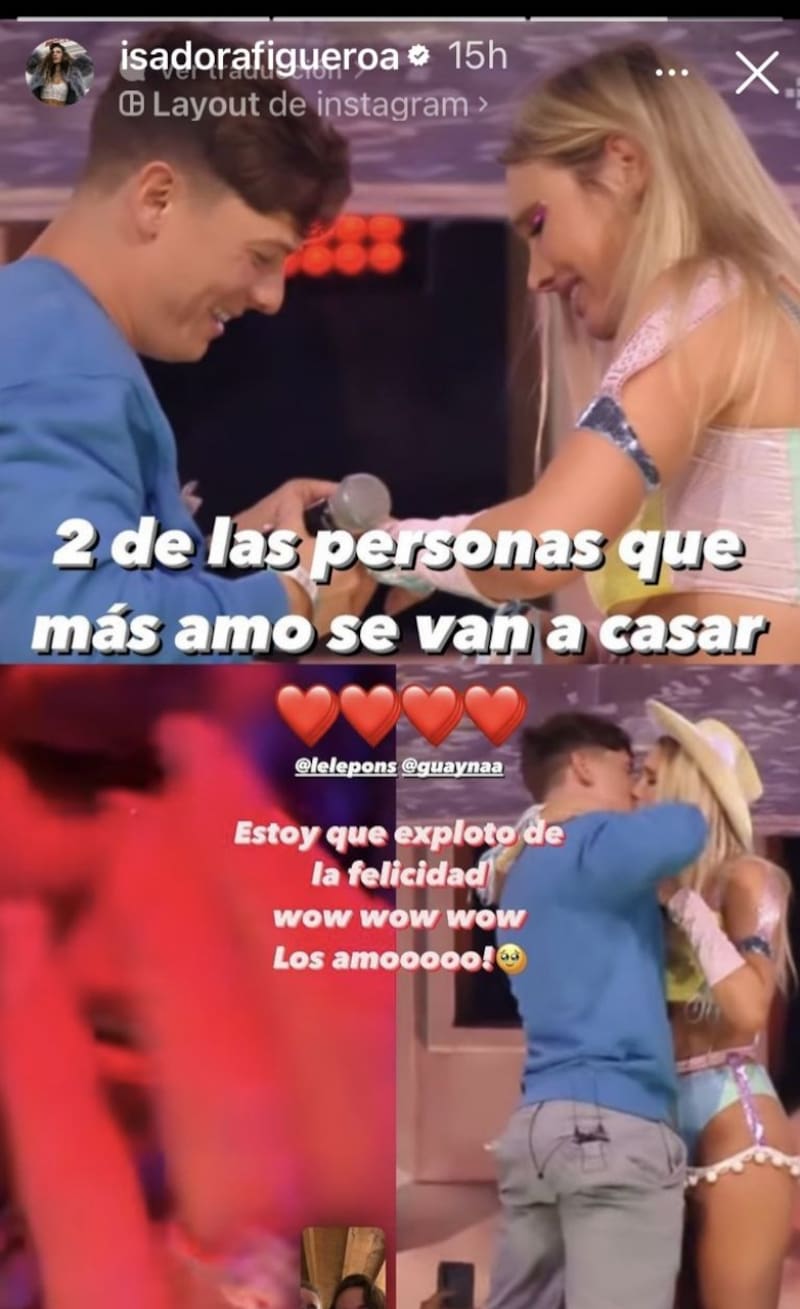 “Dos de las personas que más amo se van a casar. Estoy que exploto de felicidad, wow, wow, wow, los amo” escribió Isadora Figueroa, demostrando así la inmensa felicidad que siente por el momento que vive su prima Lele Pons, que es hija de la hermana de su madre, Marilisa Maronesse.
