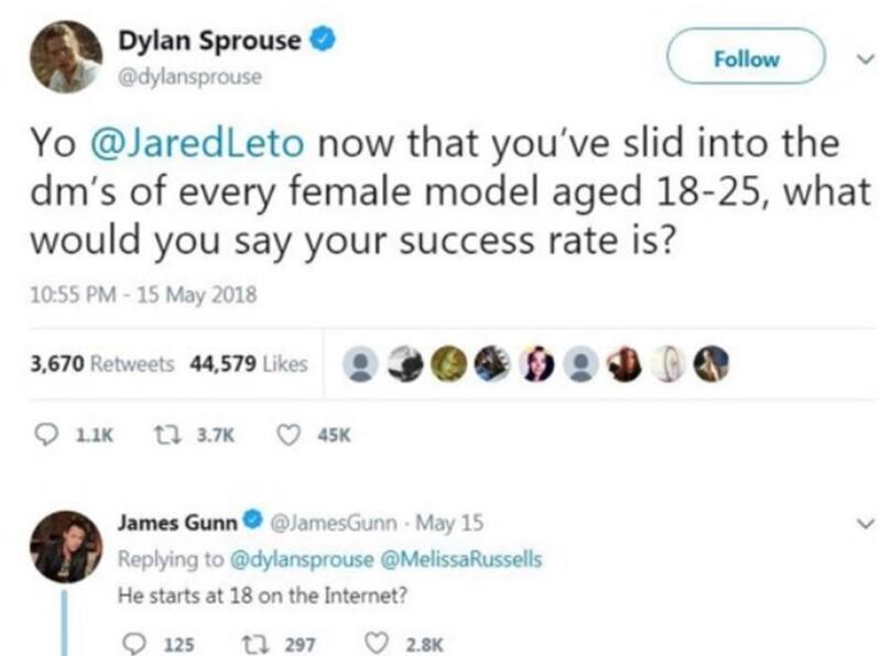 En 2018, el actor Dylan Sprouce acusó de acoso sexual a menores en Twitter a Jared Leto referencia a que el músico de 50 años contactaba a modelos no mayores de 18 años de edad a través de esta red social y para fines sexuales.