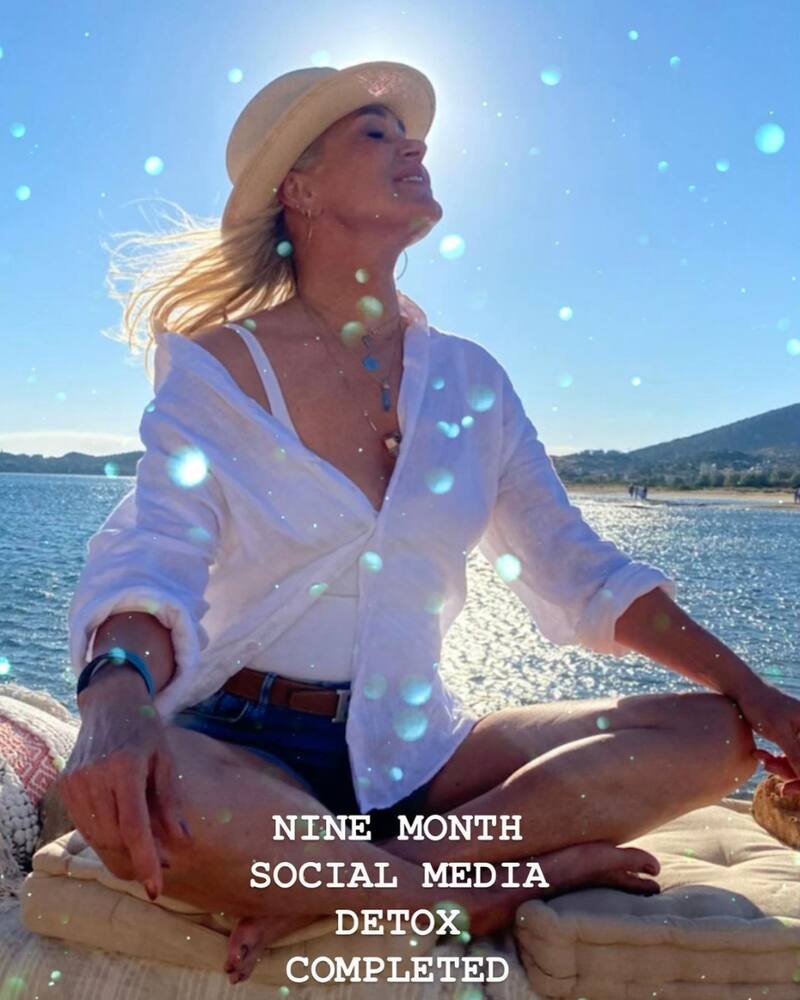 “Détox de nueve meses en redes sociales completado”, escribió sobre la imagen.