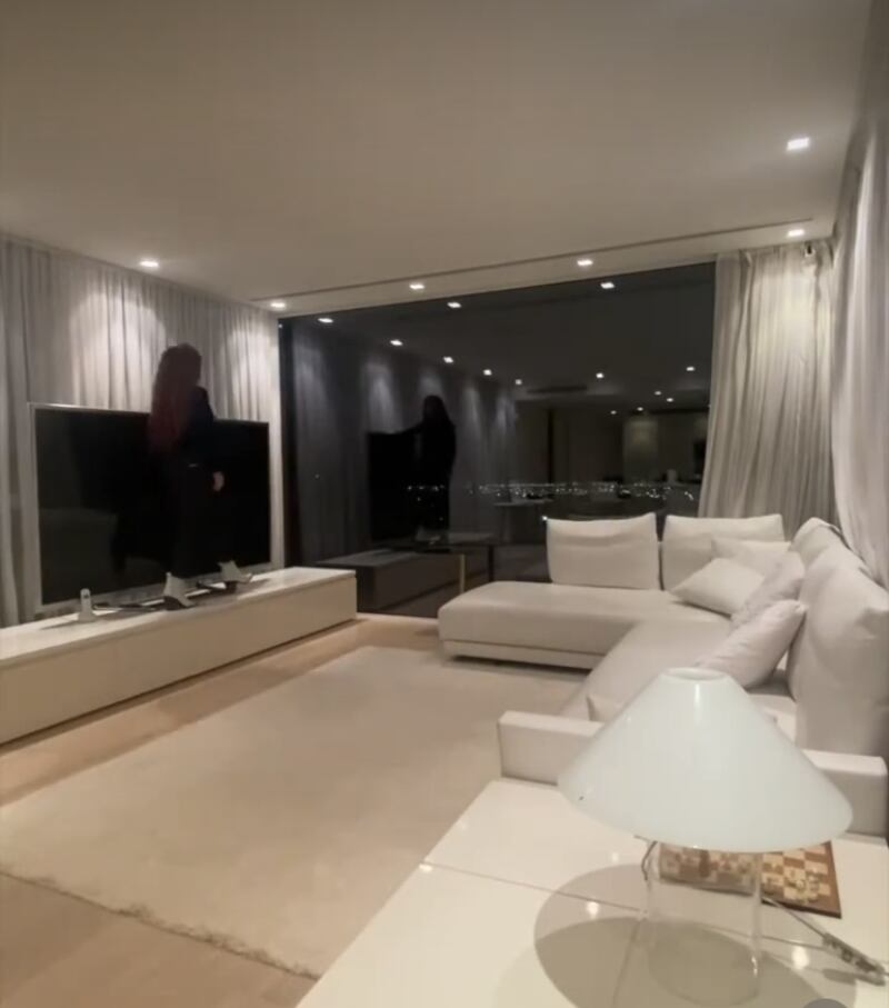 Además de tener varias terrazas para aprovechar la espectacular vista, un cine, gimnasio, estudio de grabación, una piscina con cascada, pista de tenis y un ascensor.