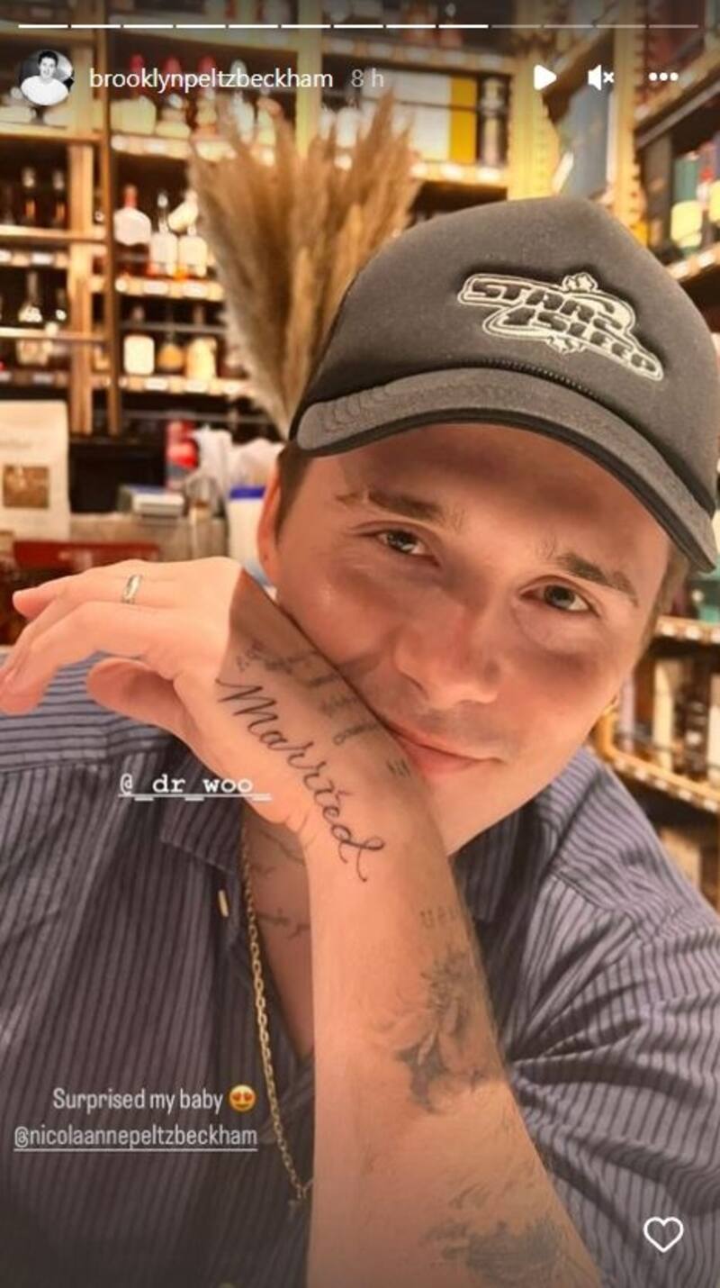 El hijo mayor de David y Victoria Beckham decidió grabar en su mano la palabra "casado" como una muestra de su afecto a su amada esposa.