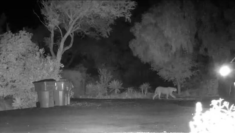 El león de montaña fue captado en imágenes de seguridad al aire libre merodeando a solo cinco millas de su casa.