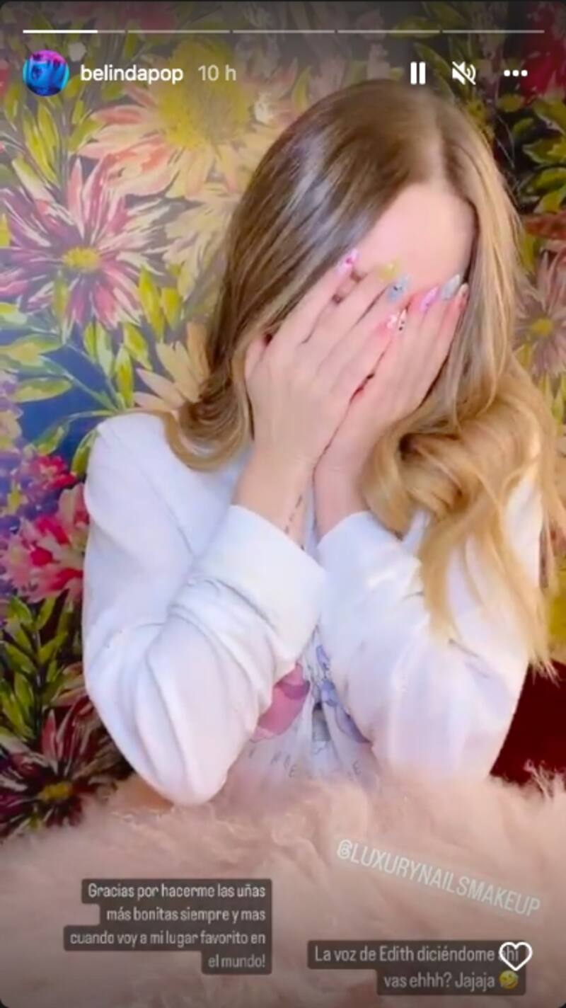 Un día antes, la cantante presumió que se decoró las uñas justamente con los personajes de Disney dando una pista del lugar al que viajaría. "Gracias por hacerme las uñas más bonitas siempre y más cuando voy a mi lugar favorito en el mundo", escribió Belinda en la historia donde mostró su manicure.