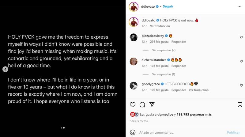 "Holy Fvuk" debutó este viernes en todas las plataformas digitales y en su cuenta de Instagram, Demi Lovato aseguró que este trabajo discográfico "me dio la libertad de expresarme de maneras que no sabía que eran posibles y encontrar la alegría que me faltaba al hacer música".