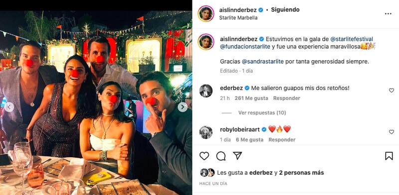 Aislinn Derbez, la hija de Eugenio Derbez que es muy amiga de la pareja, estaba sentada junto a ella y compartió algunas fotos en su cuenta de Instagram.