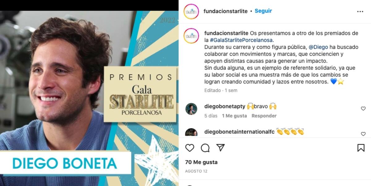 Además de Diego Boneta, en la gala Starlite Porcelanosa 2022, cuyo objetivo principal es la recaudación de fondos para las fundaciones Lágrimas y Favores y Niños en Alegría, de Antonio Banderas y Sandra García-Sanjuan, respectivamente, también se premió a Alejandra Gere, Ainhoa Arteta, Carla Pereyra, los músicos Chuco Valdés y Andrea Bocelli y el guionista, director y productor Roland Joffe.