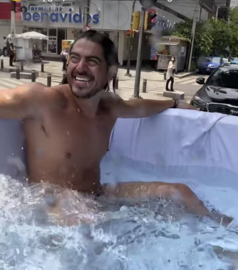 Y es que ahora, el influencer tomó por sorpresa a los transeúntes de la ciudad de México al pasear por las transitadas calles en una alberca rodante, en la que estuvo bien acompañado de un grupo de mujeres que como él disfrutaron del soleado día en diminuto traje de baño.