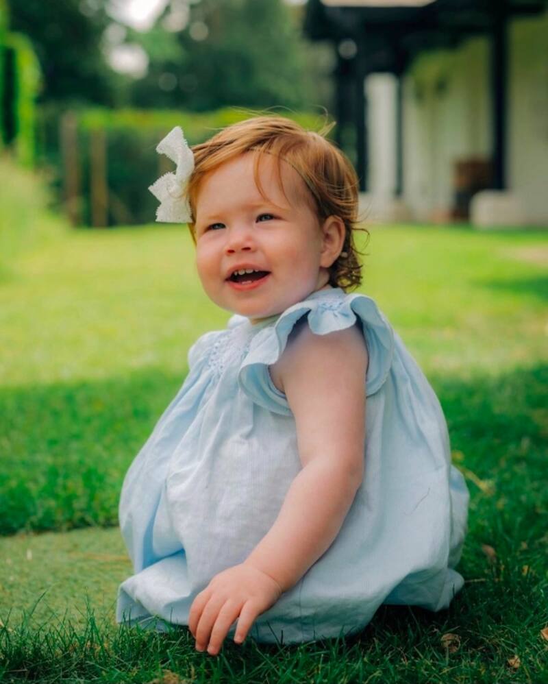 Después de la controversia del regreso de los Duques de Sussex a Reino Unido e incluso su participación en un par de eventos durante los cuatro días que duró la celebración, publicaron una fotografía de Lilibeth Diana para festejar su primer año de vida donde la vemos sentada en el pasto con un hermoso y dulce vestido azul cielo con detalles en el cuello y olanes en las mangas.