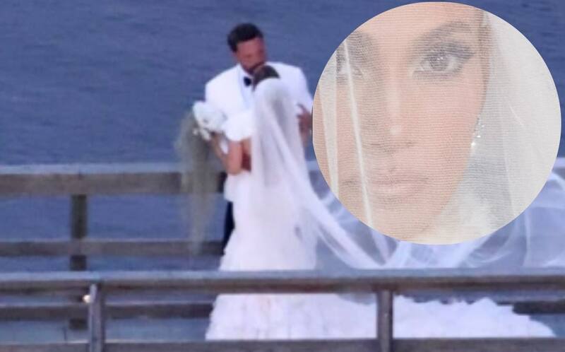 En la publicación que en pocos minutos alcanzó casi medio millón de likes aparece la actriz con su vestido de novia de cuello alto y usando su velo de novia. "Primer vistazo a mis looks de boda en OnTheJLo.com", escribió sin más detalles.