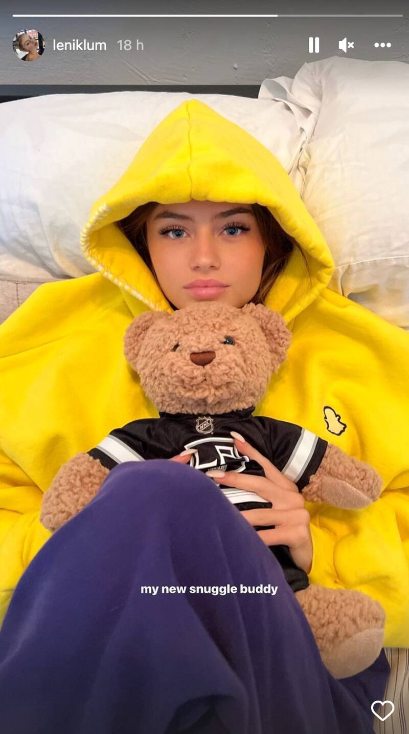 Leni Klum también compartió una foto desde su universidad, usando una sudadera de Snapchat y acompañada de un peluche.