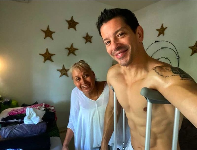 "Me lastimé la espalda en el gym, familia.. Chingao... Esta mujer es un ángel, me puso una buena estrujada", escribió junto a la imagen donde se le ve con una mujer que es parte del equipo de su quiropráctico.