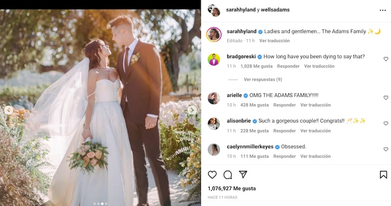 En un posteo de este miércoles, Sarah subió fotos con su ahora esposa con un divertido mensaje: "Damas y caballeros", escribió, "la Familia Adams", aludiendo al apellido de Wells pero también a la popular familia ficticia que tendrá nueva película de la mano de Tim Burton.