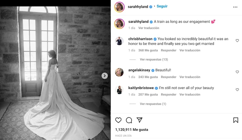 En uno de ellos subió un par de fotografías en blanco y negro acompañadas del mensaje "una cola tan larga como nuestro compromiso", aludiendo al hermoso vestido que lució, diseñado por Vera Wang, y al tiempo que tuvo que postergar su matrimonio.