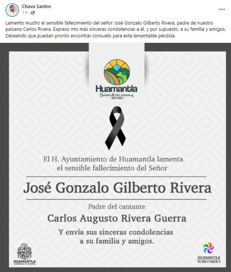 A través de redes sociales, el presidente municipal de Huamantla, Tlaxcala, Salvador Santos, confirmó la muerte del padre del cantante y envió un sensible mensaje por su fallecimiento.