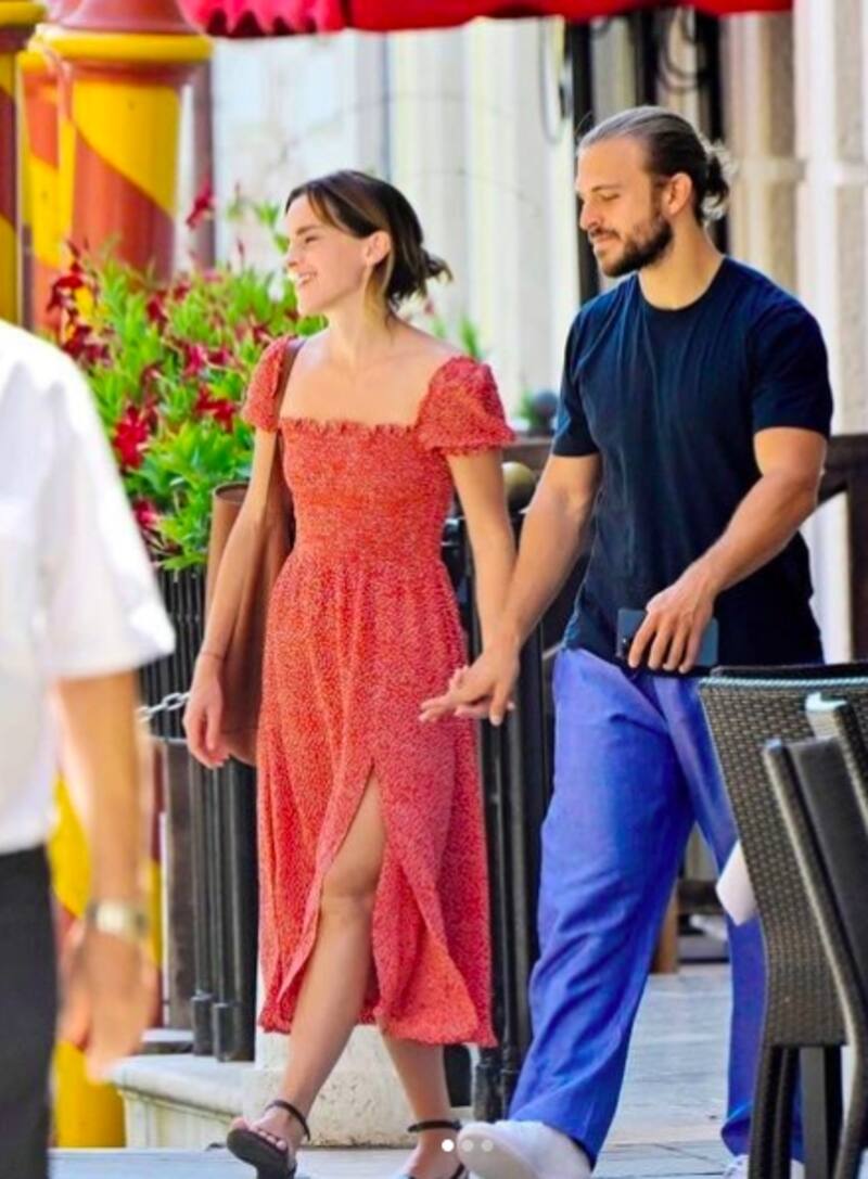 La actriz de 32 años que le dio vida a Hermione Granger decidió pasar unas vacaciones por el país europeo con el que se dice es su nueva pareja sentimental.