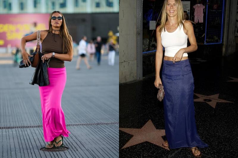 La falda que va al ras del suelo que utilizó Jennifer Aniston cuando interpretaba a Rachel Green en la serie de "Friends" se está volviendo tendencia este verano. Por muchos años, la actriz fue seguida por su forma de vestir en la década de los 90, que muchos intentaban ser como ella.