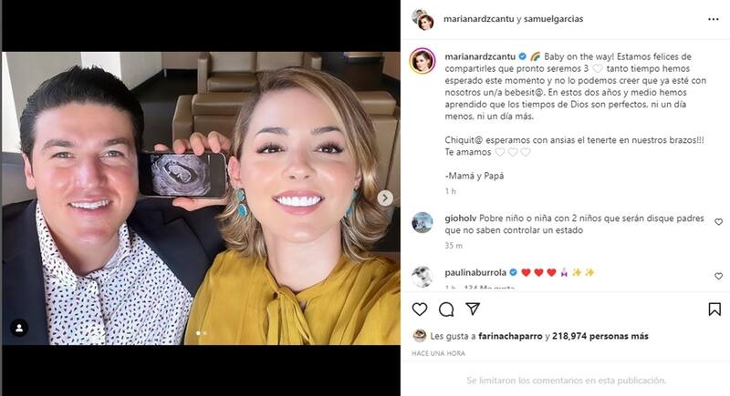 Hace una hora Mariana Rodríguez y Samuel García con una foto anunciaron en sus redes sociales que se convertirán en padres de su primer hijo.