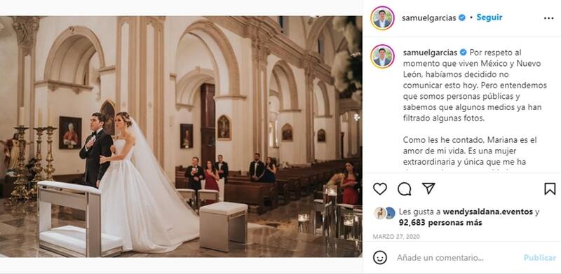 Recordemos que cuando aún era senador, Samuel García y Mariana Rodríguez se casaron en la catedral de Monterrey, ceremonia a la que asistieron sólo familiares cercanos de la pareja, ya que se celebró durante la pandemia del covid-19.