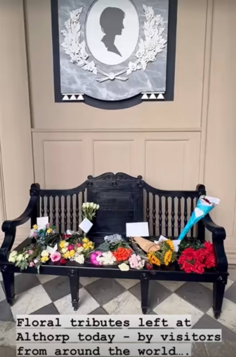 A través de las historias de Instagram del hermano de la princesa Diana, Charles Spencer, ha estado publicando fotografías y videos de cómo está adornado hasta hoy. "Tributos florales de hoy por visitantes alrededor del mundo", escribió el conde en la publicación.