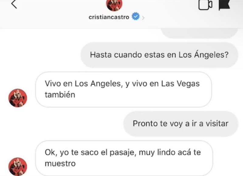 "Pov: tu cuñado pudo haber sido el mismísimo Cristian Castro", escribió al inicio del video antes de mostrar las capturas. En las capturas de la supuesta conversación con el cantante se lee que le pide a la joven verse y que incluso está dispuesto a pagarle el viaje para conocerse.