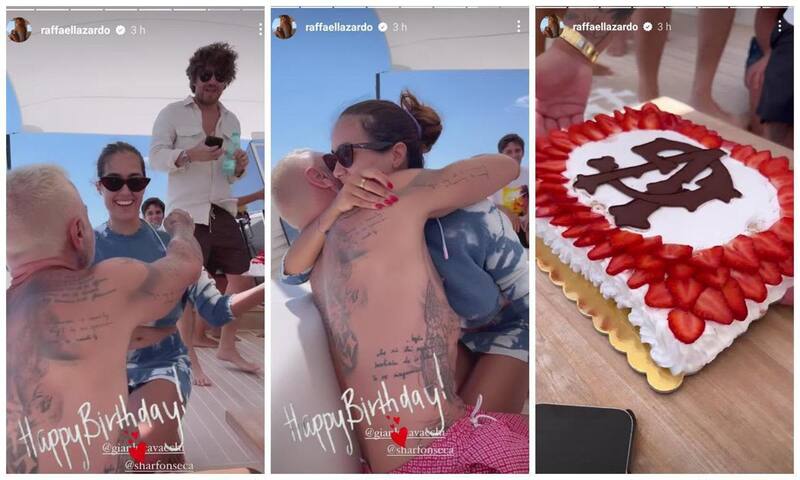 Asimismo, su familia y sus amigos más cercanos celebraron a Vacchi, a bordo de un yate de lujo. En las primeras horas del día, Sharon sorprendió al papá de su hija con una deliciosa tarta de fresas, decorada con las iniciales "GV" realizadas en chocolate.