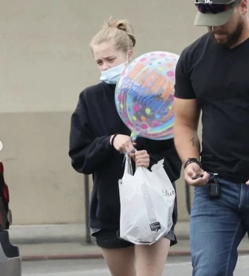 Ya que un día antes, Shiloh fue captada comprando  en el centro comercial un globo con la leyenda "Happy Birthday", para la ocasión la adolescente utilizó un short de mezclilla negro y una sudadera negra con capucha.