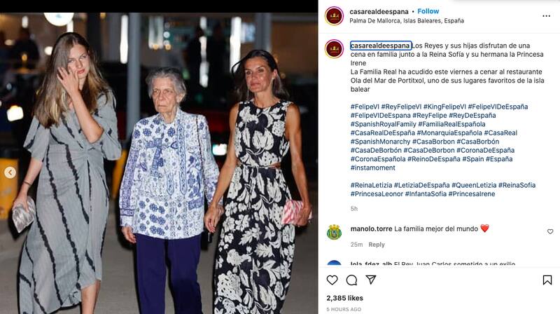 La reina Letizia volvió a lucir un vestido cut-out de Mango durante la salida de la familia real española en Palma de Mallorca. El rey Felipe y la reina Letizia fueron al restaurante Ola del Mar de Portitxol acompañados por sus hijas, la princesa Leonor y la infanta Sofía, así como por Doña Sofía y su hermana, la princesa Irene de Grecia.