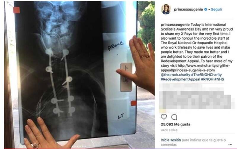 Mediante sus redes sociales la princesa mostró sus propias radiografías y comparte el link de un vídeo en el que ella contó cómo se enfrentó a la enfermedad, por la que tuvieron que operarle a los 12 años.
