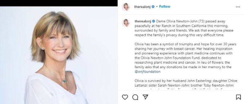 La muerte de Olivia Newton- John conmocionó al mundo