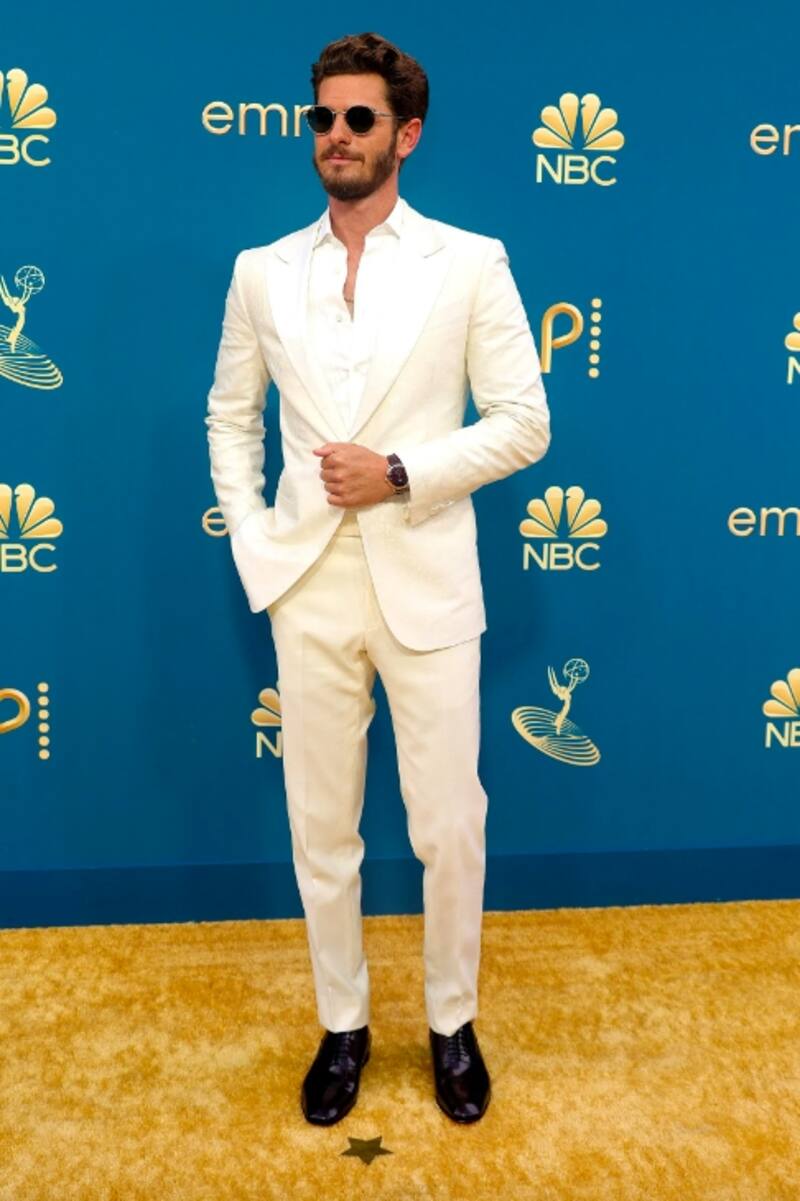 El actor llegó a la alfombra roja con un traje completamente blanco de Zegna que complementó con zapatos negros y lentes obscuros.