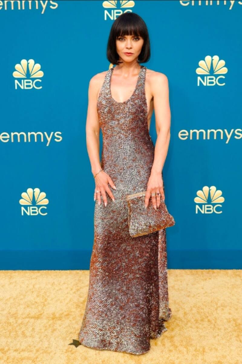 Fue uno de los looks favoritos de la noche, llegó muy estilosa y súper sexy con un hermoso vestido de Armani Privé SS22 Couture. Fue invitada por su nominación en la serie Yellowjackets.