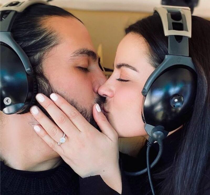 Son algunos de los buenos deseos que compartieron amigos, familia y seguidores en la publicación de tres fotografías de la pareja besándose con audífonos protectores y luciendo un enorme y hermoso anillo de compromiso.