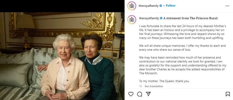 Con el arribo del cortejo fúnebre al Palacio de Buckingham, la princesa Anne rompió su silencio y compartió emotivas palabras en honor a su hermana. Un comunicado en el que confirmó que pasó con la monarca sus último día de vida.