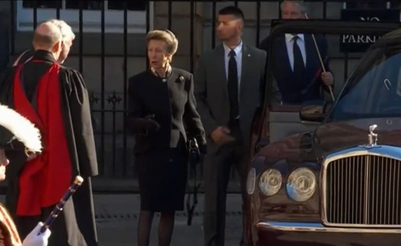 Este martes, la hermana del Rey Carlos III volvió a acompañar el cuerpo de su madre en su viaje desde Escocia a Londres. La Princesa Real y su esposo, el Vicealmirante Sir Tim Laurence, asistieron a un servicio en la Catedral de St Giles, para luego irse con el ataúd de roble justo antes de las 16:30 horas.