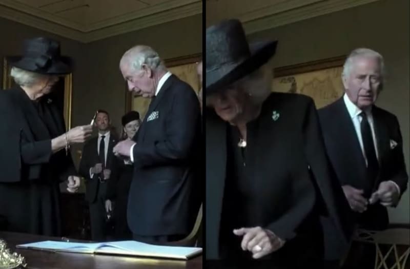 En las imágenes que ahora le dan la vuelta al mundo se puede ver el momento en el que el nuevo monarca se dispone a firmar el libro de visitas del castillo de Hillsborough, cuando se confunde con las fechas y tiene que pedir ayuda para rectificar de inmediato. Una acción que sin duda es normal debido a que ha experimentado una serie de emociones los últimos días que parecieran confundirlo.