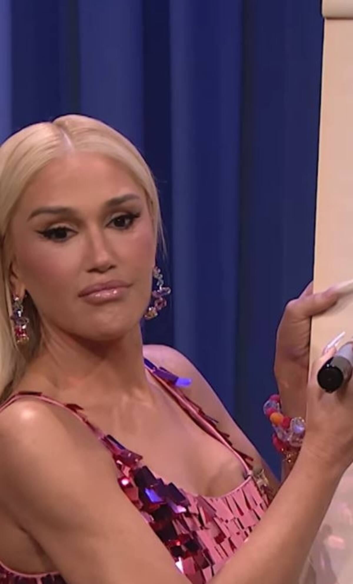 Gwen Stefani estuvo de invitada en el programa "Late Night with Seth Meyers" para promocionar la nueva temporada de "The Voice US", donde sorprendió con su radical cambio de imagen, pues lució con un rostro algo diferente.