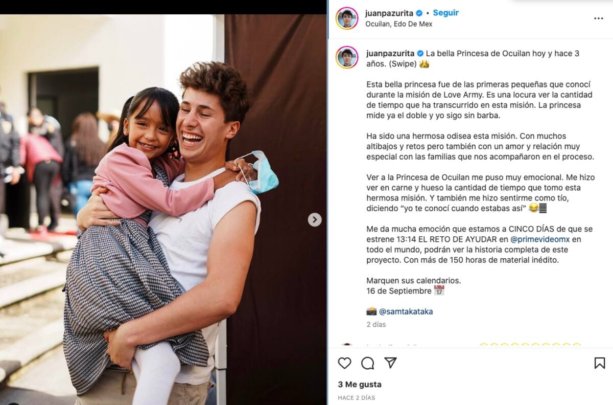 Juanpa Zurita dice que como siempre graba lo que hace para YouTube, su idea inicial era subir un video en esta plataforma en la que es un conocido creador de contenido con millones de seguidores. "Cuando arranca la misión nos dice que va a tomar seis meses y luego es un año, año y medio y luego dos, tres años. Y yo me dediqué nada más a comunicar avances, casas, casas, un sitio web, lovearmymexico.com. Y hacemos rueda de prensa hace un año y tengo un mar de material gigantesco. Ahí es cuando llega Eugenio [Derbez], quien fue una parte clave en la misión para que se completara".
