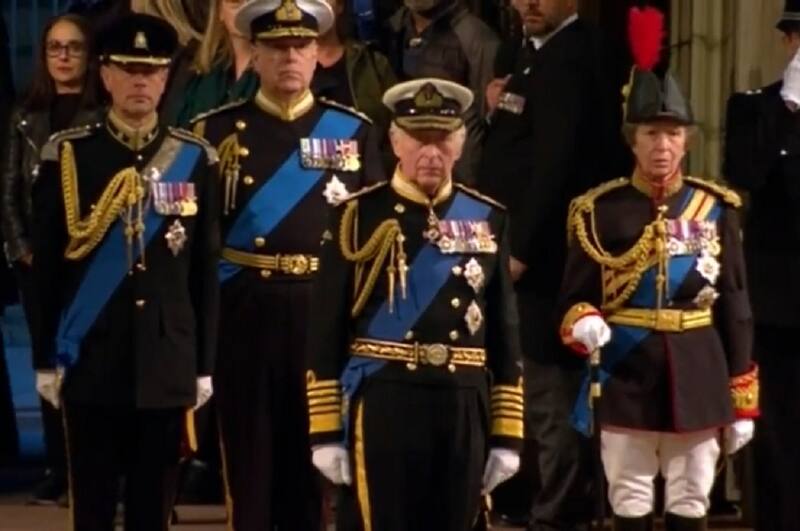 El rey Carlos III lideró la vigilia, posicionándose adelante del cofre. Atrás de este se ubicó el príncipe Andrew. Mientras que a sus costados estaban la princesa Anne y el príncipe Edward. Esto no impidió que las personas que asistieron hasta Westminster Hall pudieran despedirse de la fallecida reina Isabel, tal como lo hizo David Beckham, quien realizó una fila de 14 horas para darle su último adiós a la monarca.