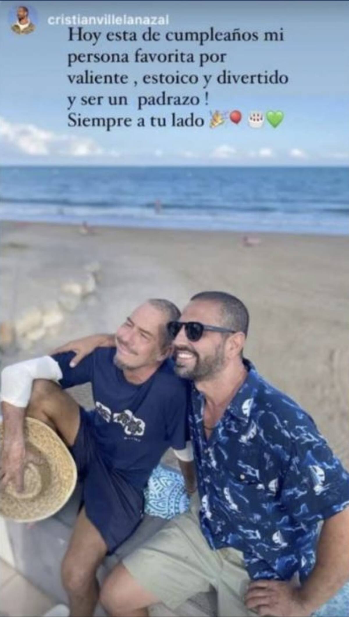 Con una imagen de ellos abrazados en la playa, ha servido para refrendar su cariño, además de que Villela la ha acompañado con el mensaje: "Hoy está de cumpleaños mi persona favorita por valiente, estoico y divertido y ser un padrazo. Siempre a tu lado".