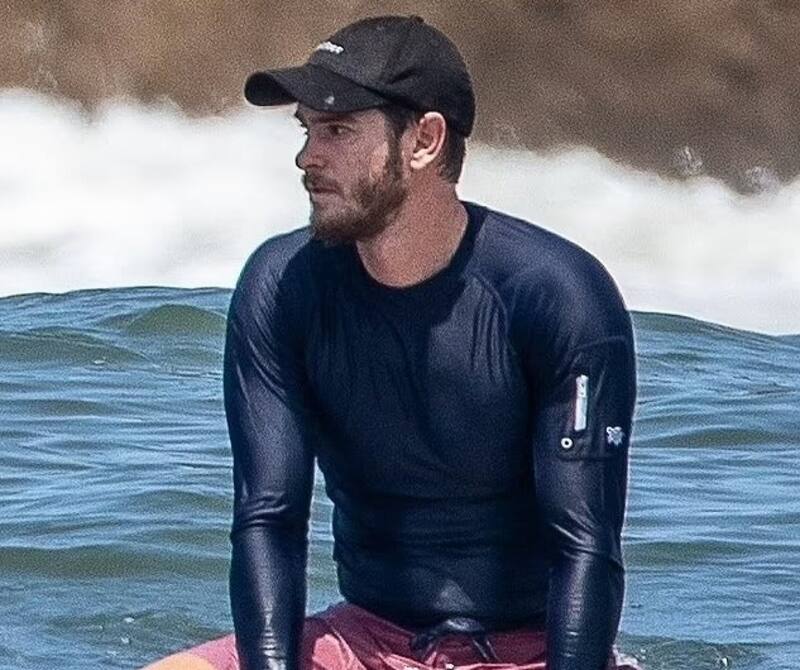 En otras de las imágenes vueltas virales, y que se tomaron el lunes 19 (día que en México se sintió un temblor exactamente cinco años después del terremoto de 2017 y 37 del de 1985), se ve a Andrew sentado sobre su tabla esperando una ola adecuada a la cual lanzarse.