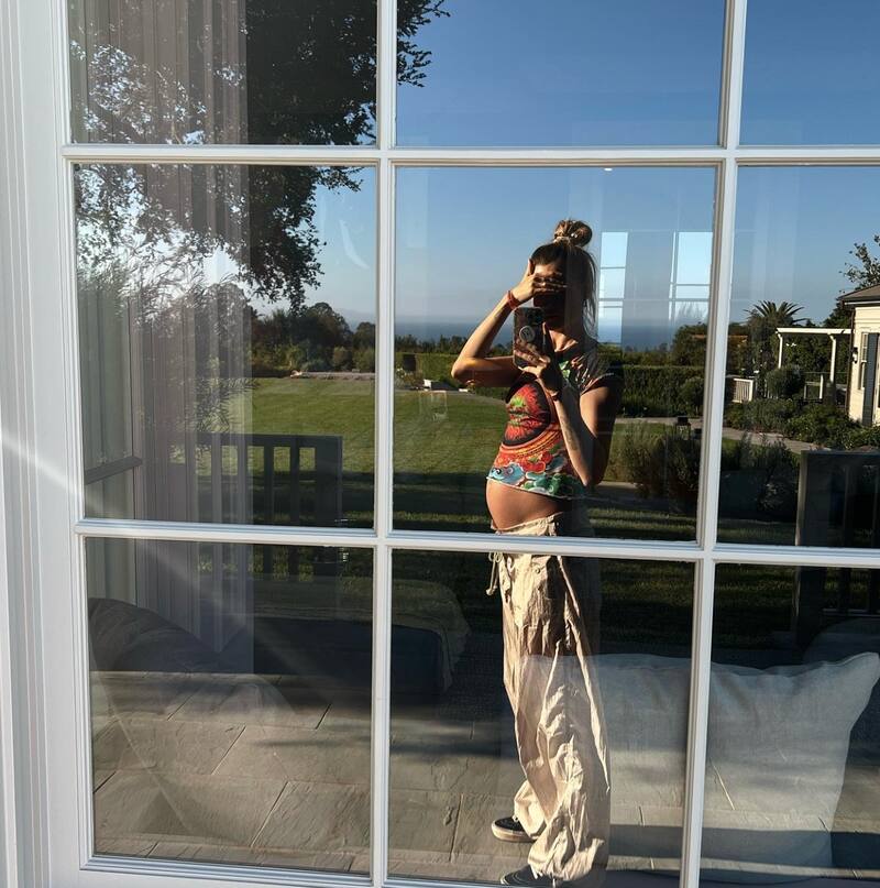 Adam Levine estaba sonriente con una playera roja y unos shorts negros, mientras que Prinsloo presumió su embarazo con una playera totalmente blanca.